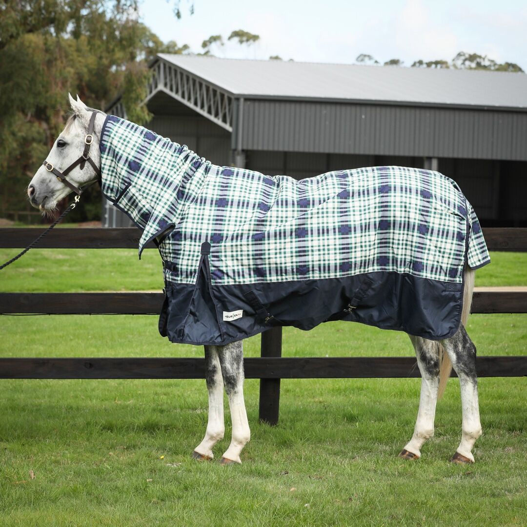 Lightweight Bounty Huntar Synthetic Combo is ideal for Autumn/Spring Seasons or horses/ponies with woolly winter coats. They are 600 denier waterproof breathable outer, 100gsm polyfil body 100gsm polyfil neck with satin lined body, shoulders, combo neck & tail flap. Double chest straps, double x -over surcingles with elastic, 2 secure Velcro combo neck fittings, deep shoulder gussets, removable leg straps and 3 gathered rump darts for a more shapely fit.