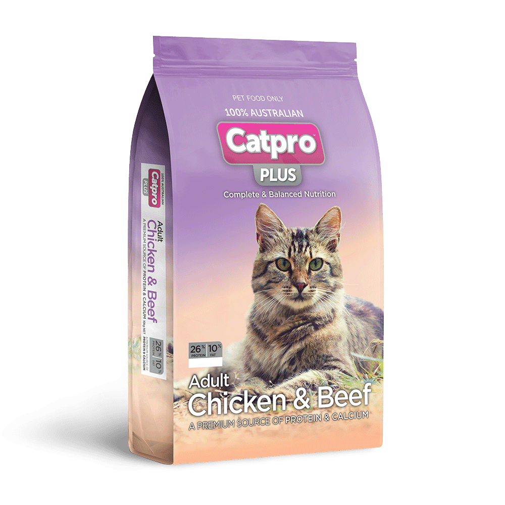 Crafted with real chicken and beef, this dry food offers balanced nutrition to fulfill your adult cats dietary requirements with a delectable taste theyll love. CatPro Plus stands out in the pet food industry by using only high-quality, real meats in our recipes, differentiating from competitors who may use meat by-products. Each ingredient in our formulations is chosen for its nutritional benefits, with real chicken providing a source of essential amino acids, and beef offering a rich taste and high protein content. Dedicated to your cats health and happiness, CatPro Plus offers nutritionally complete meals that not only taste great but contribute to their overall vitality and showcase our commitment to excellence in pet nutrition.