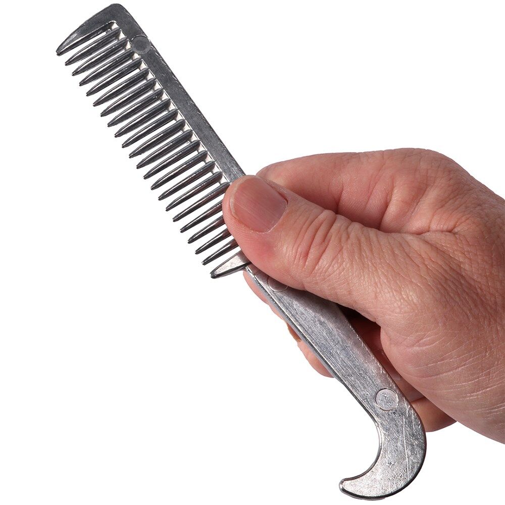 • A mane pulling comb with a hoof pick design handle made from aluminium.