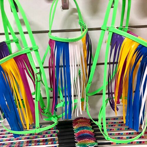 Horse Fringed Fly Vinyl Veil/Head Stall In Rainbow Colours
