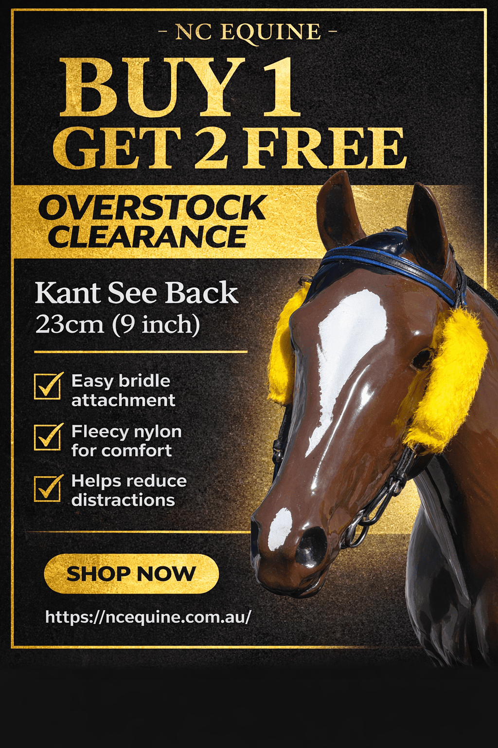 - Attaches securely to bridle sides