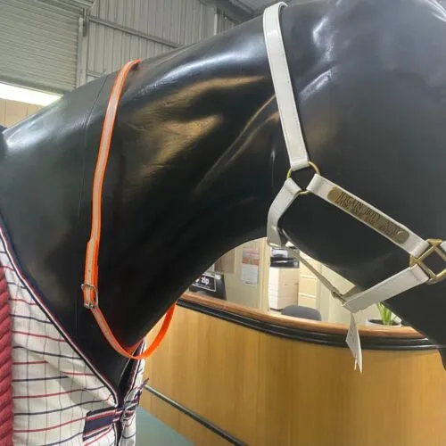 In orange with a Hi -Vis Strip in Silver, making this a useful aid for trail riding and great for track work for racehorses.