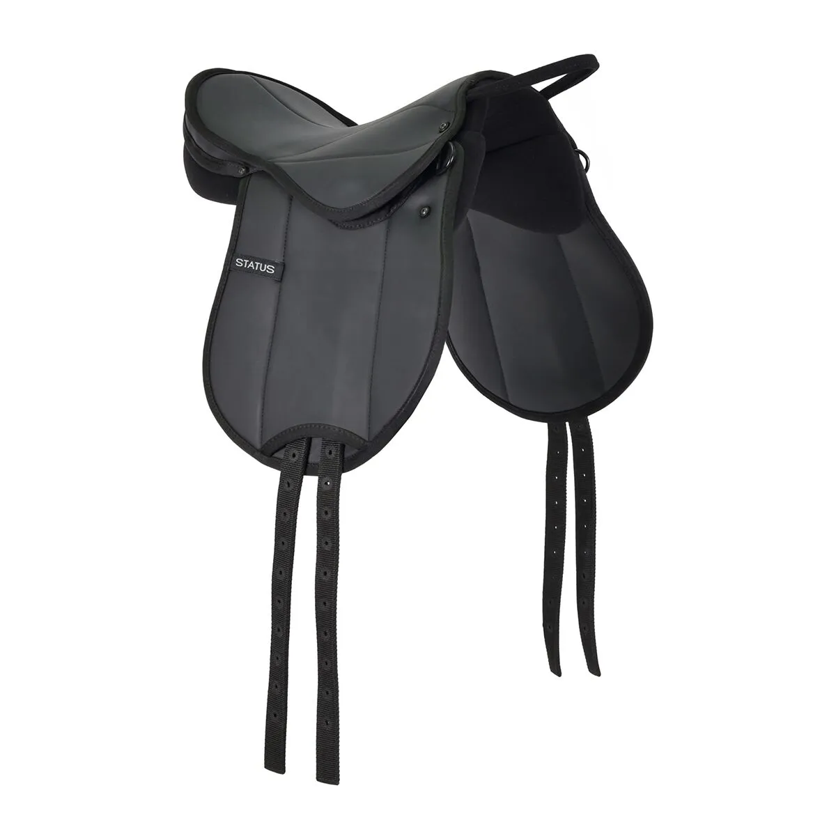 The pony pad comes with a 45cm Status Pony Girth, Status 1″ wide webbing stirrup leathers plus a pair of clogs.