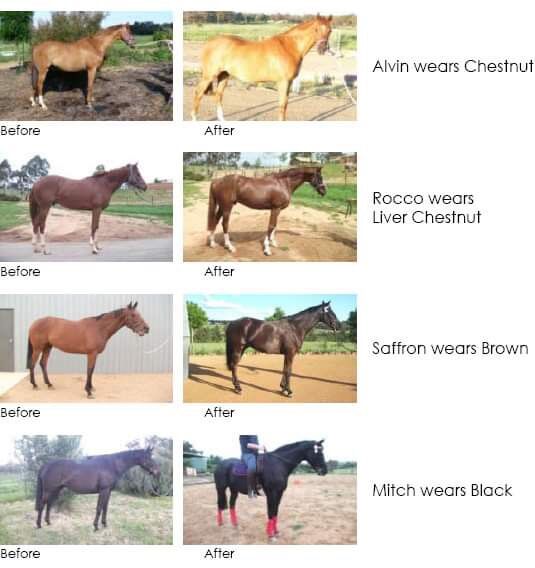 | Colour | Black, Chestnut, Clear, Dark Bay, Dark Brown, Dark Chestnut, Liver Chestnut, Medium Brown, Palomino |