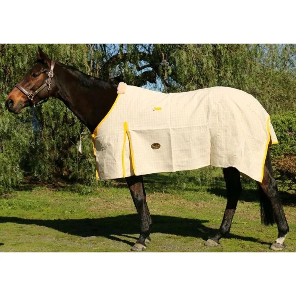 The rug must be hosed down before use so the waxed cotton thread will swell up and expand into all sewn areas enhancing the waterproof treatment.